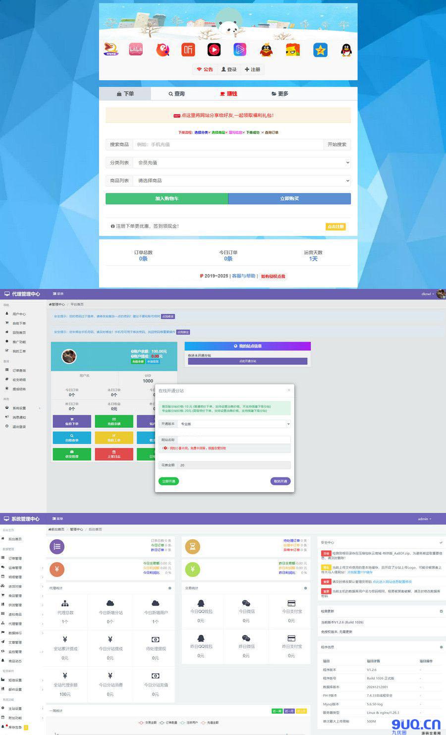 官网自营 PC/H5源码 PC网站源码 2026-01-07 13:41:17 全开源最新彩虹云商城二开Pro美化版 新增超多功能 分享商品可得佣金【10.5元】 点击参与全开源最新彩虹云商城二开Pro美化版 新增超多功能 测试环境:Nginx + PHP7.4 + MySQL 安装说明:访问域名进行安装 功能介绍: -用户登录注册页面独家美化 -后台登录页美化 -后台首页美化/信息详细更易了解 -含新版供货商系统) -新增支付通道站内自动轮询系统 -新增多种分站信息排行榜 -自带数据修复工具 -内置两种批量上架插件