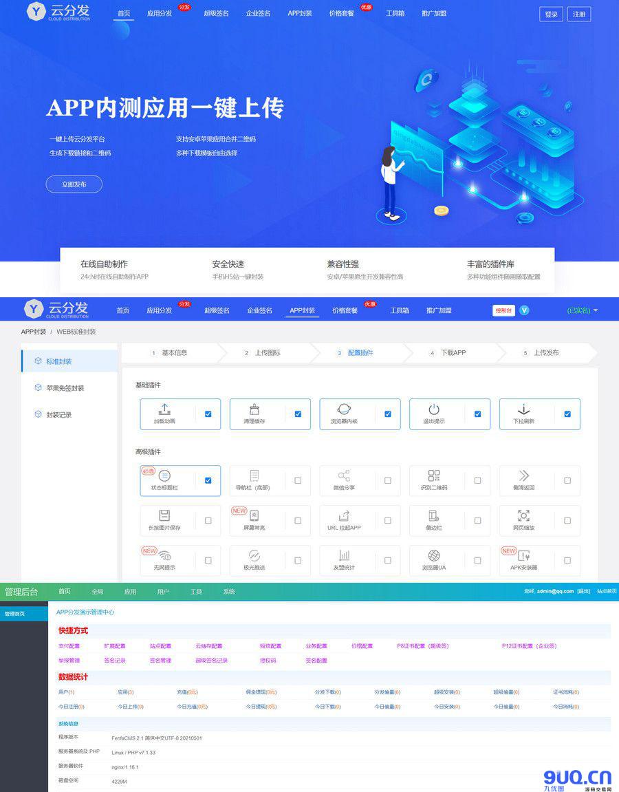 全开源仿第八区H5APP封装打包分发系统源码1、同时支持安卓、苹果和免签描述上传